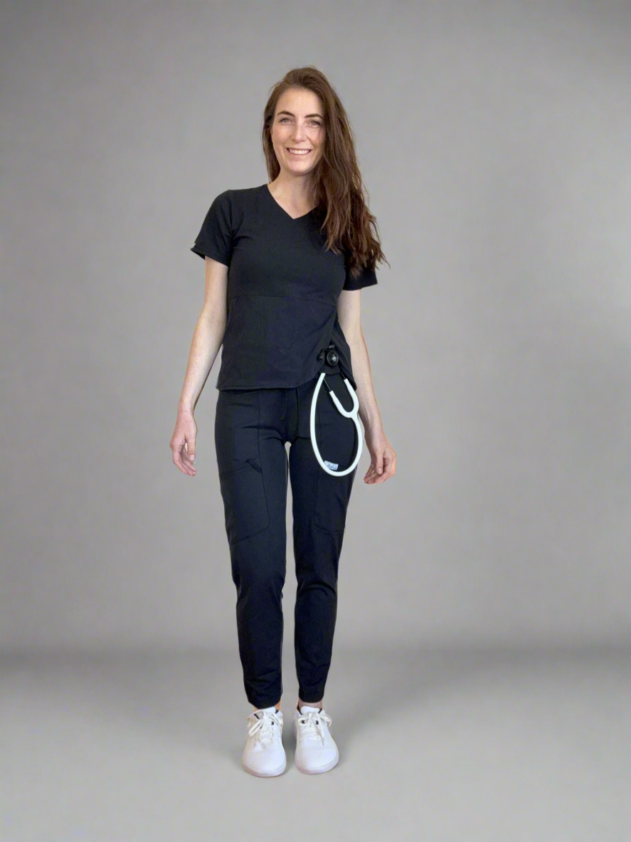 Buttery soft, 2 pocket top that has an opening around the stethoscope holder. You’ll look chic and be comfortable with or without your stethoscope in the pant holster. Try this new pendulum top today!